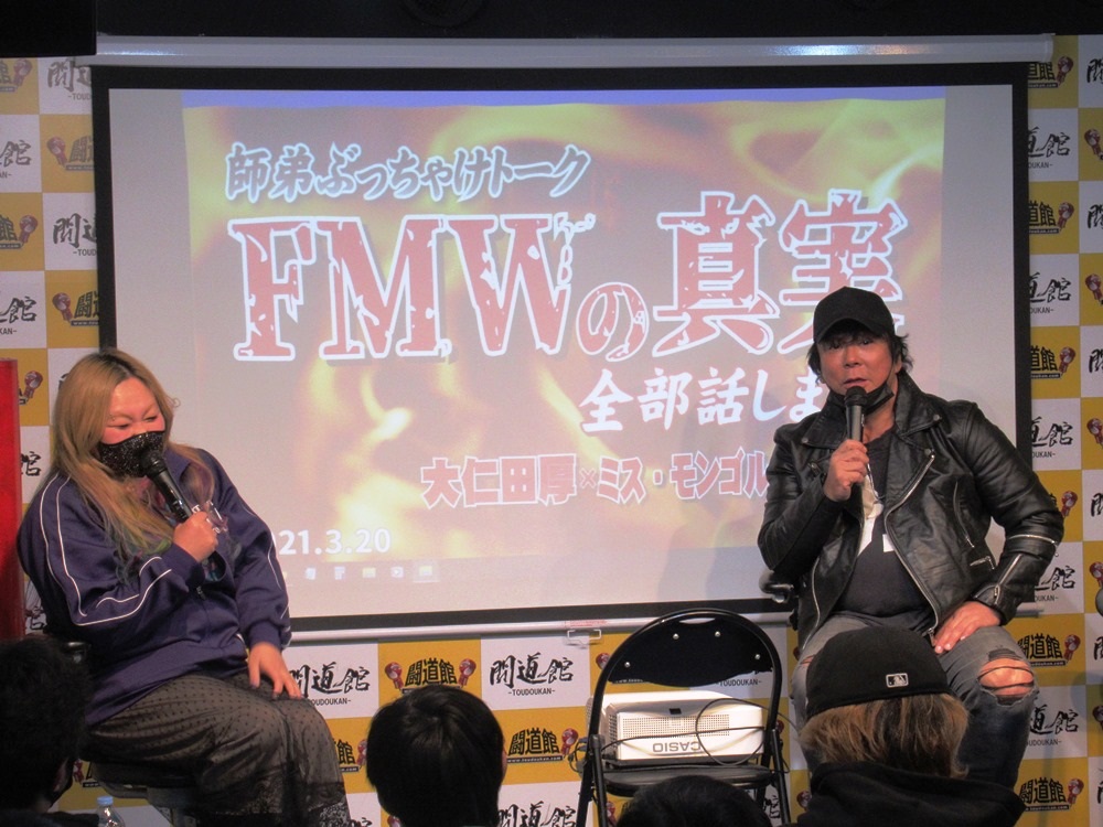 大仁田は3月20日、東京・豊島区のプロレスショップ闘道館で「師弟ぶっちゃけトーク! FMWの真実、全部話します 大仁田厚VSミス・モンゴル」と題したトークイベントを愛弟子のミス・モンゴルと行った。