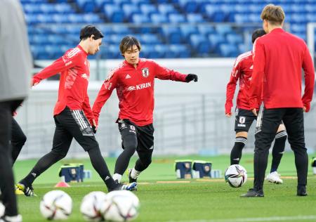 練習開始時はパス回しでウオーミングアップし、南野(サウサンプトン)らが明るい表情でボールを追った。