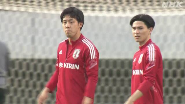 イングランドプレミアリーグでプレーする南野拓実選手や今月25日の韓国との強化試合でゴールを挙げたボランチの遠藤航選手などがリラックスした表情でパス回しなどを行い、コンディションを整えていました。